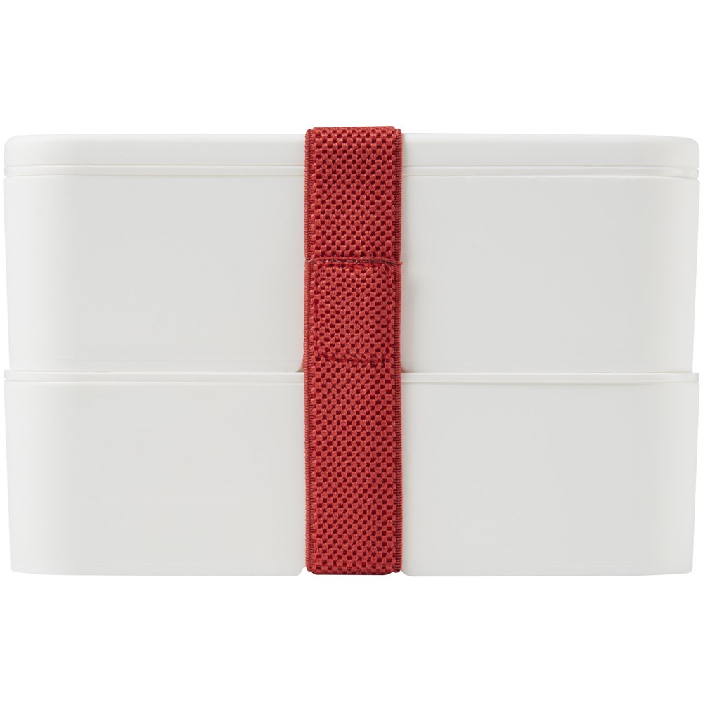 Diese MIYO Doppel-Lunchbox mit zwei 700 ml Behältern bietet viel Platz für Sandwiches, Obst, Salat und vieles mehr. Sie wird von einem Band aus recyceltem PET gehalten. Andere Farbkombinationen und Zubehör wie z. B. ein Göffel oder ein Innenfach sind ebenfalls erhältlich. Bitte kontaktieren Sie uns für weitere Informationen. Mikrowellengeeignet, spülmaschinenfest, BPA-frei und vollständig recycelbar. Hergestellt in UK und verpackt in einem recycelten PE-Kunststoffbeutel. Sie können Ihr MIYO ganz individuell mit Einzelnamen auf dem Deckel gestalten. Kontaktieren Sie uns bitte für weitere Informationen.