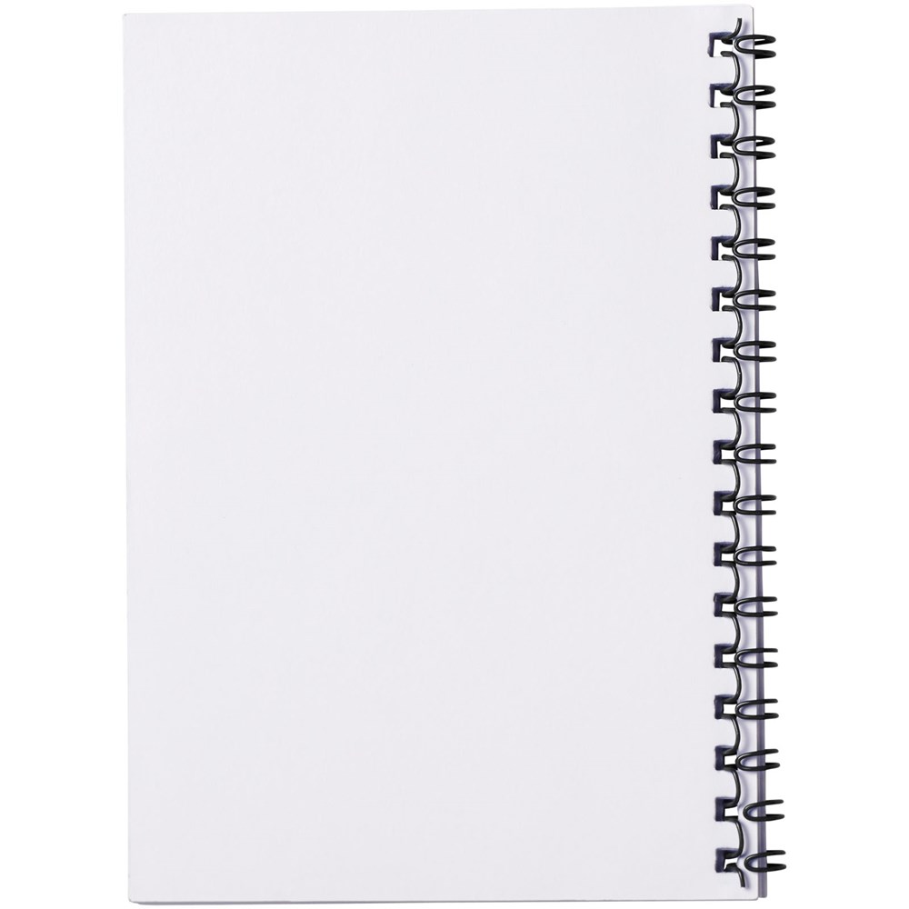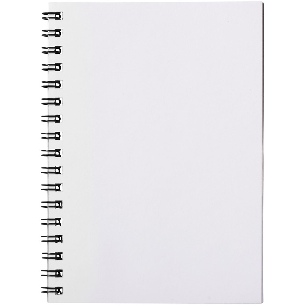 Desk-Mate® A6 Spiralnotizbuch. Enthält 50 Blatt 80g/m2-Blankopapier, ein glänzendes Karton-Deckblatt (250g/m2) und einen transparenten Polypropylenumschlag von 450 Mikron. Schwarze oder weiße Spiralbindung. Auch erhältlich mit 100 Blatt. Sie können die Seiten dieses praktischen Notizbuchs mit jedem beliebigen Design gestalten - ob liniertes, kariertes oder gepunktetes Papier - alles ist möglich!