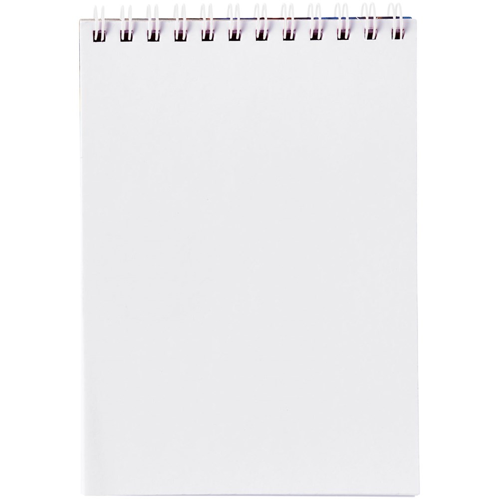Desk-Mate® A6 Spiralnotizbuch. Dieses Notizbuch verfügt über eine weiße oder schwarze Spiralbindung, ein glänzendes Karton-Deckblatt (250g/m2) und 80g/m2-Blankopapier. Standardlieferung mit 50 Blatt, auch erhältlich mit 80 Blatt. Sie können die Seiten dieses praktischen Notizbuchs mit jedem beliebigen Design gestalten - ob liniertes, kariertes oder gepunktetes Papier - alles ist möglich!