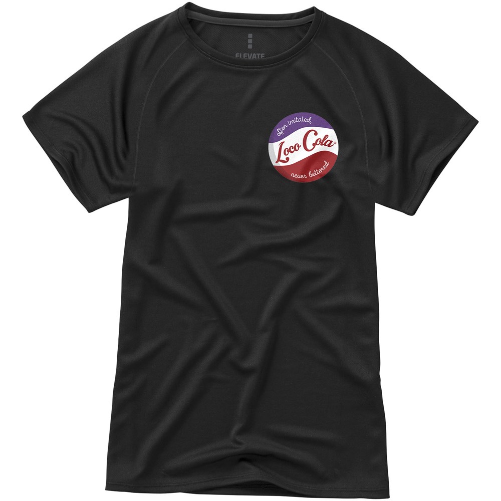 Das Niagara Kurzarm-T-Shirt für Damen ist perfekt für jede aktive Gelegenheit. Dieses T-Shirt besteht aus 100% atmungsaktivem und feuchtigkeitsableitendem 145 g/m2 Polyestergewebe und hält Sie kühl und trocken. Die Raglanärmel und das heat transfer Nackenlabel sorgen für zusätzliche Bewegungsfreiheit, ohne die Haut zu reizen. Damit Sie sicher sind, wurden reflektierende Details für zusätzliche Sichtbarkeit hinzugefügt.