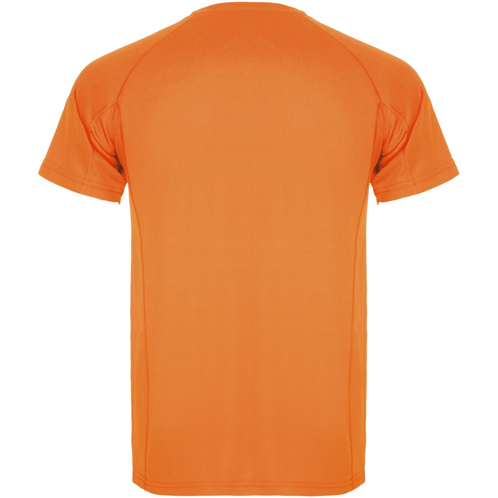 Kurzärmeliges Funktions-T-Shirtmit Raglanärmeln. Rundhalsausschnitt mit verdeckten Nähten. Seitenschlitze mit passender Überwendlingsnaht. Atmungsaktiver Stoff, leicht zu waschen und zu trocknen. Herausnehmbares Etikett. Technisches Gewebe. Ultravioletter Schutzfaktor.