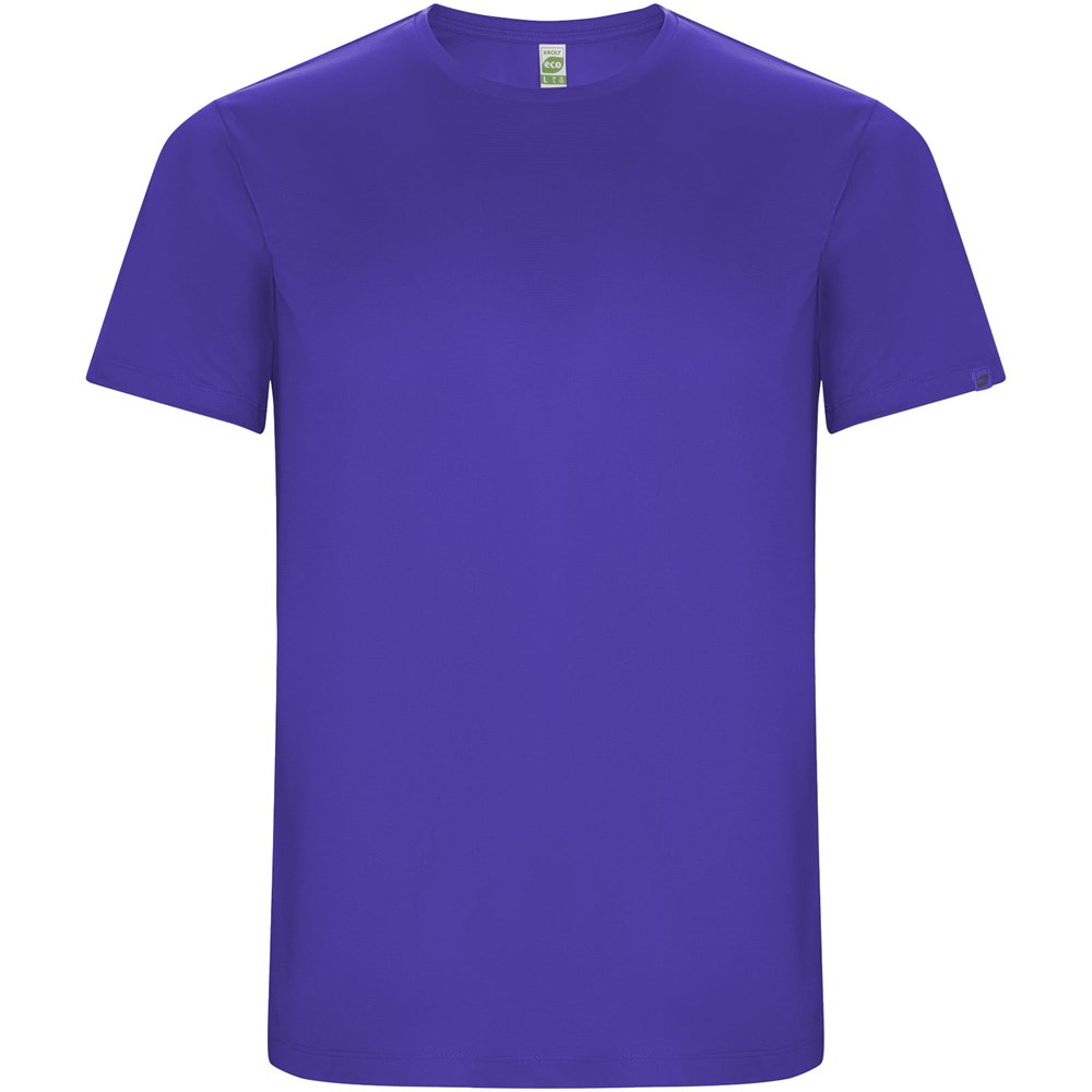 Funktions-T-Shirt aus recyceltem Polyester CONTROL DRY. Rundhalsausschnitt mit farblich abgesetzten Nähten. ECO-Logo-Etikett am Ärmel. Verpackung aus Recyclingmaterial. Herausnehmbares ECO-Etikett. Verpackung aus Recyclingmaterial. Technisches Gewebe. Das Modell ist 180 cm groß und trägt Größe M.