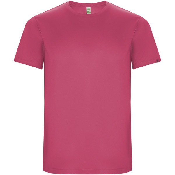 Funktions-T-Shirt aus recyceltem Polyester CONTROL DRY. Rundhalsausschnitt mit farblich abgesetzten Nähten. ECO-Logo-Etikett am Ärmel. Verpackung aus Recyclingmaterial. Herausnehmbares ECO-Etikett. Verpackung aus Recyclingmaterial. Technisches Gewebe. Das Modell ist 115 cm groß und trägt Größe 5/6.