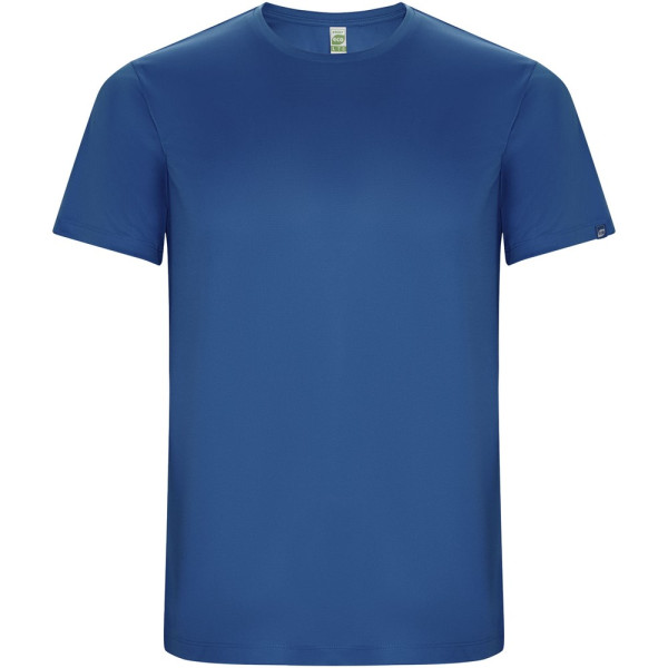 Funktions-T-Shirt aus recyceltem Polyester CONTROL DRY. Rundhalsausschnitt mit farblich abgesetzten Nähten. ECO-Logo-Etikett am Ärmel. Verpackung aus Recyclingmaterial. Herausnehmbares ECO-Etikett. Verpackung aus Recyclingmaterial. Technisches Gewebe. Das Modell ist 115 cm groß und trägt Größe 5/6.