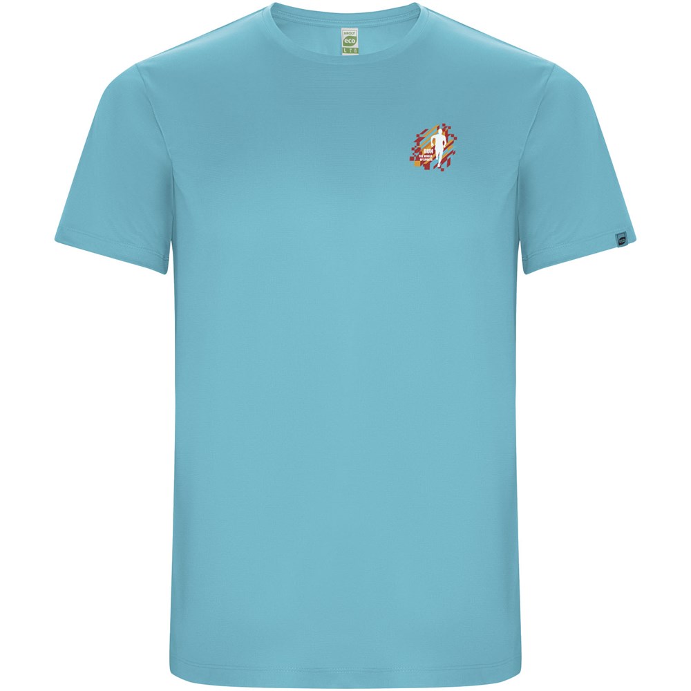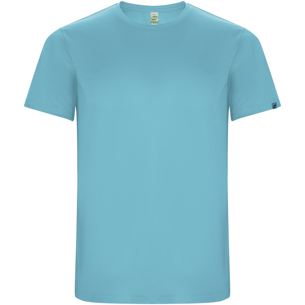 Funktions-T-Shirt aus recyceltem Polyester CONTROL DRY. Rundhalsausschnitt mit farblich abgesetzten Nähten. ECO-Logo-Etikett am Ärmel. Verpackung aus Recyclingmaterial. Herausnehmbares ECO-Etikett. Verpackung aus Recyclingmaterial. Technisches Gewebe. Das Modell ist 115 cm groß und trägt Größe 5/6.