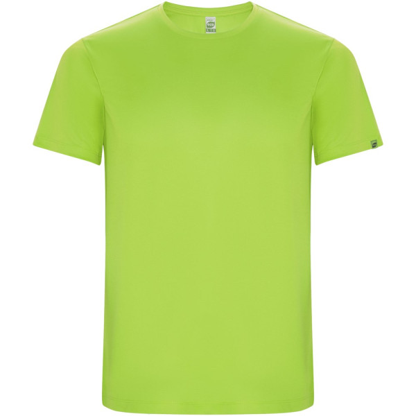 Funktions-T-Shirt aus recyceltem Polyester CONTROL DRY. Rundhalsausschnitt mit farblich abgesetzten Nähten. ECO-Logo-Etikett am Ärmel. Verpackung aus Recyclingmaterial. Herausnehmbares ECO-Etikett. Verpackung aus Recyclingmaterial. Technisches Gewebe. Das Modell ist 115 cm groß und trägt Größe 5/6.