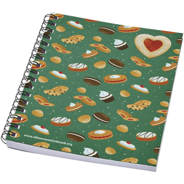 Bringen Sie etwas Farbe in Ihre Notizen mit diesem A6-Spiralnotizbuch. Es enthält 50 Blatt unbedrucktes 80 g/m² Recyclingpapier und einen 320 g/m² Kartoneinband in einer Auswahl an Farben. Sie können die Seiten dieses vielseitigen Notizbuchs mit jedem beliebigen Design gestalten, ob Sie nun liniertes Papier, Quadrate oder Punkte wünschen, alles ist möglich! Hergestellt aus verantwortungsvoll beschafften Materialien. Hergestellt in UK.