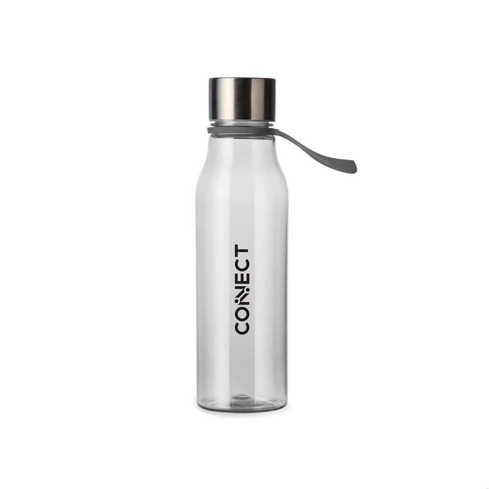 Wasserflasche aus BPA-freiem Triphenylmethan. Durch die Schlaufe am Verschluss lässt sich die Flasche leicht an Trainingsgeräte hängen, durch die schmale Form passt die Flasche in die meisten Becherhalter. Die Flasche lässt sich leicht reinigen und zudem leicht bedrucken. Nur Handwäsche. Inhalt: 600ml