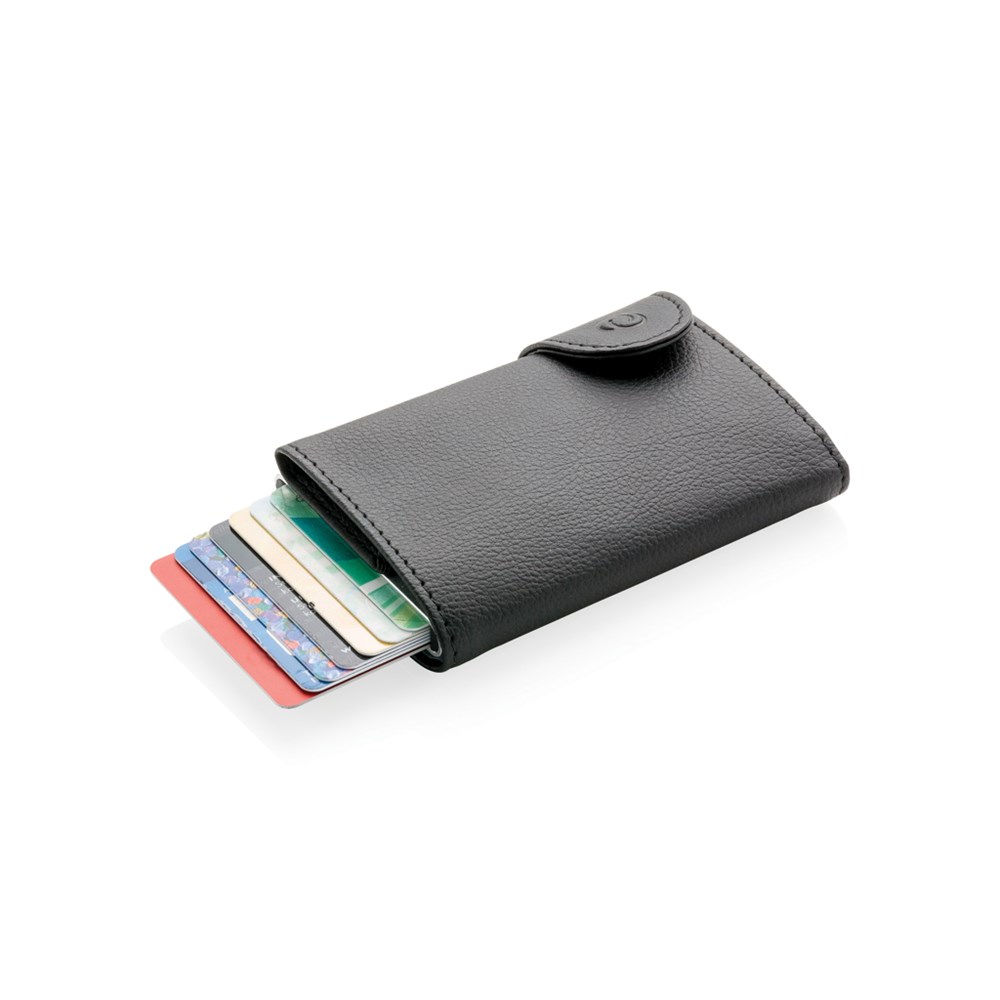 Dieser solide Aluminium Kartenhalter schützt Ihre wichtigsten Karten vor RFID-Attacken. Nie wieder gebrochene oder verbogene Karten. Passend für 7 Karten oder 5 geprägte Karten. Mit einfachem Schiebemechanismus um an die Karten zu gelangen. Im Geldfach bewahren Sie Ihr Bargeld auf.