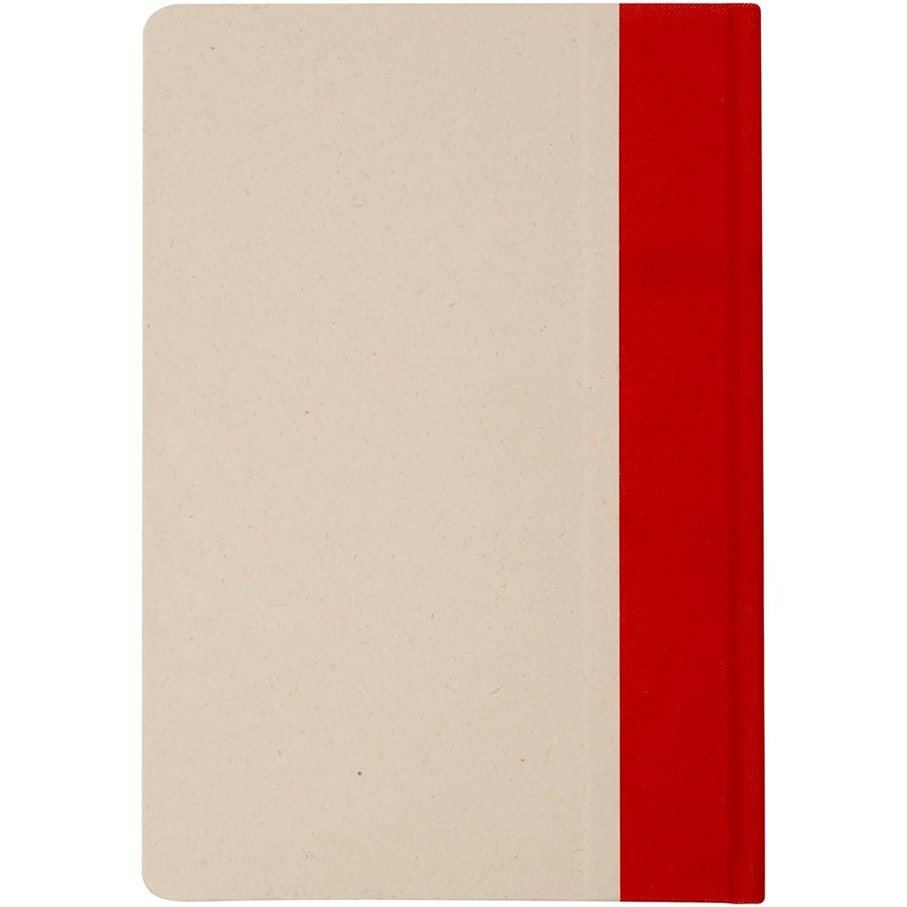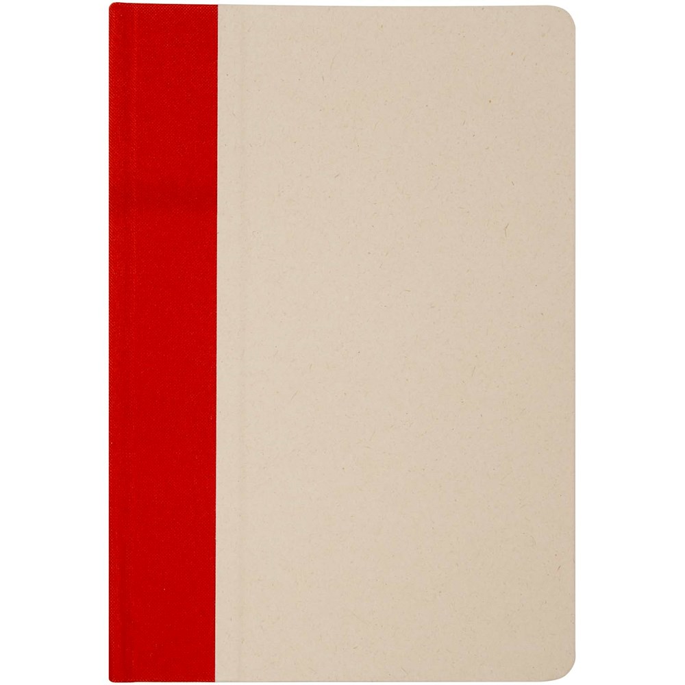 Liliana Hardcover Notizbuch im A5-Format mit abgerundeten Ecken und 80 Blatt liniertem 90 g/m² Papier. Der Einband besteht aus RPET und Zuckerrohrpapier.
