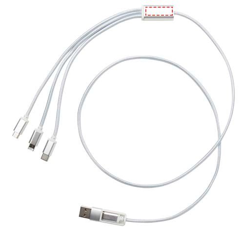 Dieses Kabel verfügt über einen USB-A- und einen Typ-C-Eingangsanschluss in Kombination mit einem Typ-C-, einem Micro-USB- und einem Lightning/Micro-USB-Kombi-Ausgangsanschluss. Diese Anschlüsse ermöglichen das Laden der meisten iOS/Android-Smartphones, Kameras, Powerbanks und Ohrhörer. Das Kabel ist 100 cm lang und besteht aus recyceltem Aluminium und RPET.