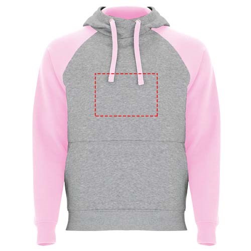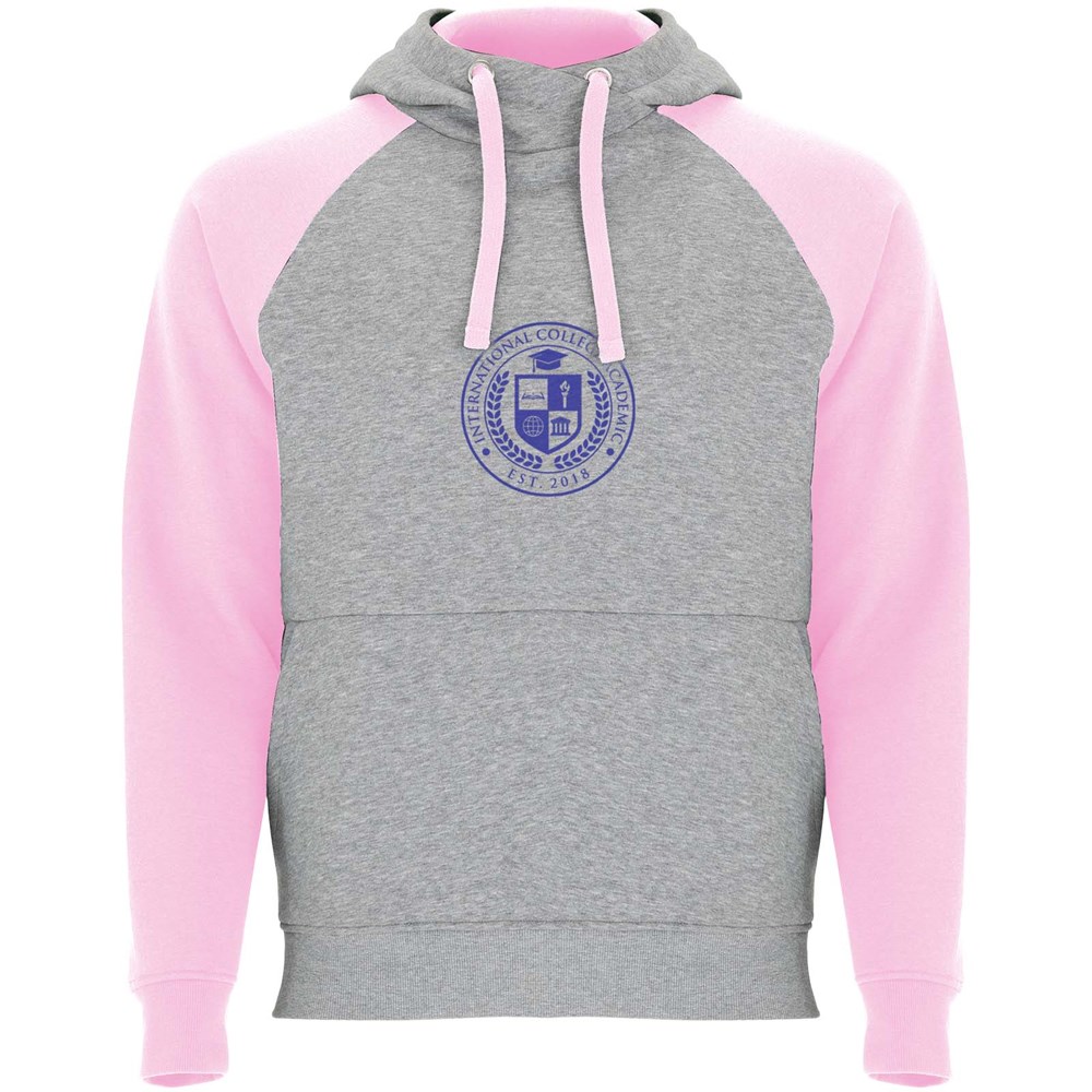 Zweifarbiger Unisex Kapuzenpulli. Kapuze mit gekreuztem Kragen und Metallösen. Innenkapuze, Kordelzug und Raglanärmel in Kontrastfarbe. Kängurutasche. Bündchen und Saum aus elastischem 1×1-Rippstrick. Abnehmbares Etikett.