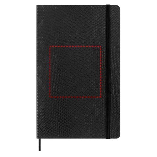 Liebe zum Detail, Design und Handwerkskunst vereinen sich in diesem luxuriösen Notizbuch, das in Zusammenarbeit mit VEGEA® hergestellt wurde, einem Pionierunternehmen, das organische Abfälle aus der italienischen Weinindustrie in neue Materialien umwandelt. Es verfügt über einen weichen Einband mit Python-Effekt (100% VEGEA®) mit abgerundeten Ecken, einen elastischen Verschluss und ein passendes Lesebändchen, elfenbeinfarbenes, säurefreies Papier (100 g/m²), Aufkleber zur persönlichen Gestaltung des Buchrückens, eine erweiterbare Innentasche, einen Hinweis „Im Falle eines Verlustes“ auf dem Deckblatt und eine schwarze, wiederverwendbare Geschenkbox.