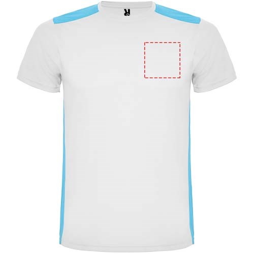 Funktions-T-Shirt aus atmungsaktivem Stoff. Rundhalsausschnitt. Kombination aus zwei Polyestergeweben im Rücken- und Schulterbereich. Polyester Bienenwabe Vorne und 3D-Netz Polyester auf Schulter und Rücken. Material ist feuchtigkeitabsorbierend. Ziernähte auf den Schultern und Seiten. Schnitt mit verlängertem Rückenteil. Abnehmbares Etikett.