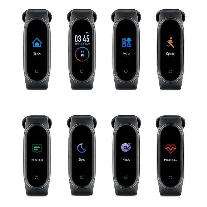 5.0 wireless Fitness Smart Watch aus ABS mit Silikonarmband. 0,96'''' Touch-LCD-Display. Wiederaufladbarer Li-Pol-Akku 90 mAh. Der Download der kostenlosen App (Hryfine) ist erforderlich. Erhältlich für iOS und Android.