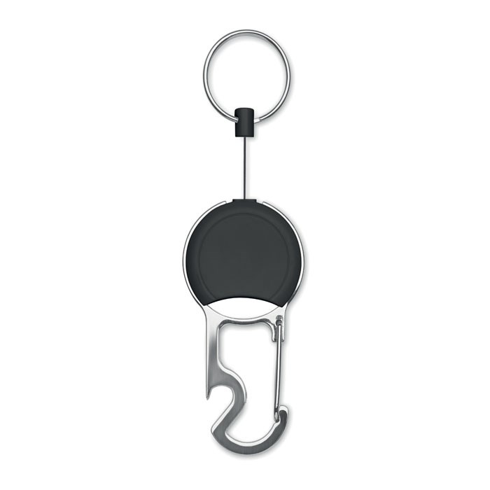 Einziehbarer Kartenhalter aus ABS mit Clip, Schlüsselring und Kapselheber.