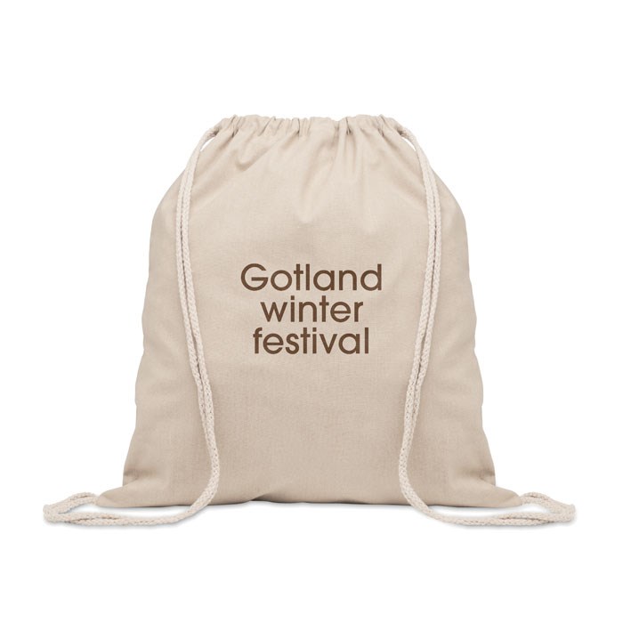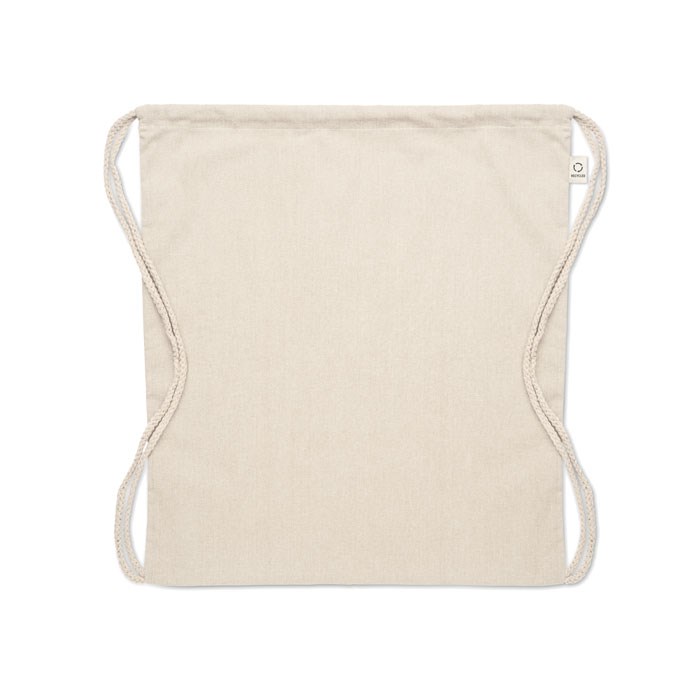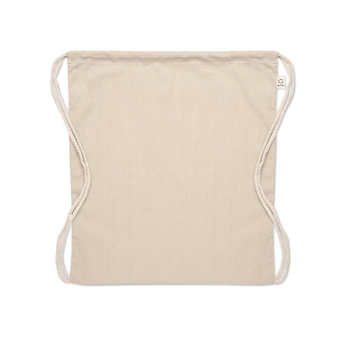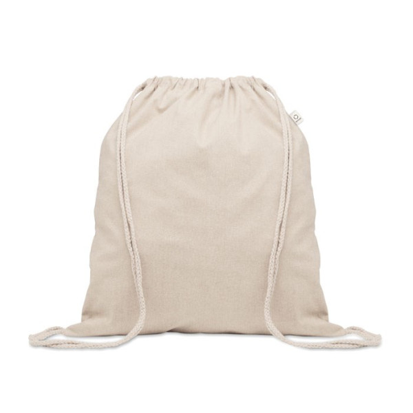 Beutel mit Kordelzug aus recycelter Pre-Consumer-Baumwolle (70 %) und RPET (30 %). 140 g/m². Artikel kann nach dem Bedrucken schrumpfen.