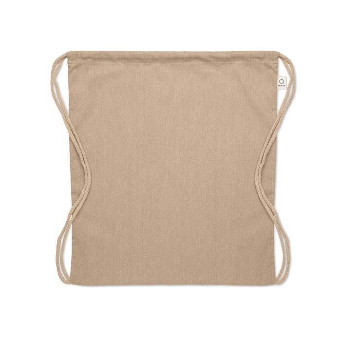 Beutel mit Kordelzug aus recycelter Pre-Consumer-Baumwolle (70 %) und RPET (30 %). 140 g/m². Artikel kann nach dem Bedrucken schrumpfen.
