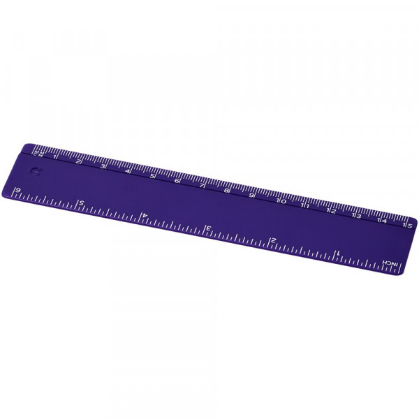 Stabiles Plastiklineal. Markierungen in Zoll und Zentimeter. Bitte beachten Sie, dass die Linealmarkierungen zusammen mit Ihrer Druckvorlage aufgedruckt werden, unveredelte Lineale haben keine Markierungen und sind blank.