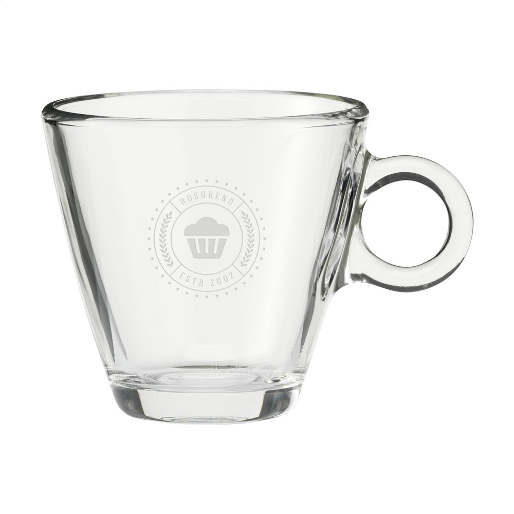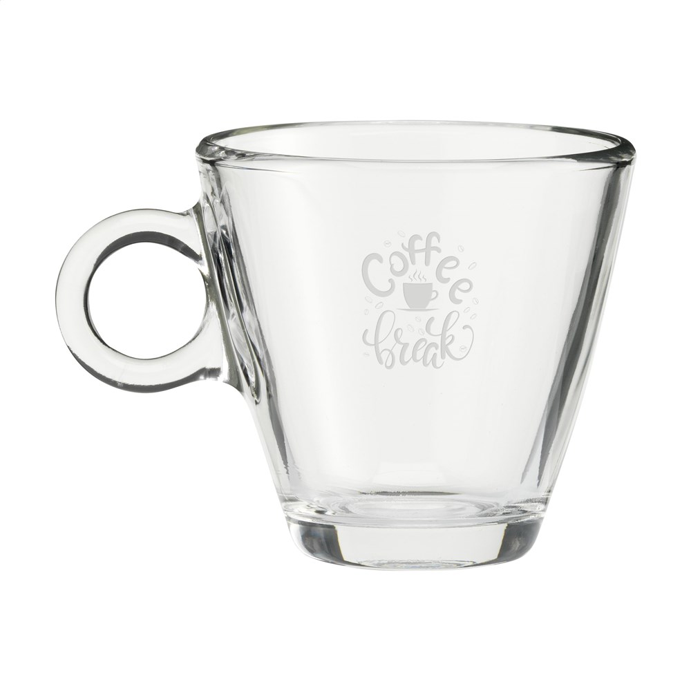 Kaffeeglas aus hochwertigem, gehärtetem Glas. Zeitloses Modell mit einem auffälligen runden Ohr. Geeignet für Kaffee und Cappuccino. Fassungsvermögen 230 ml. Hergestellt in Italien.