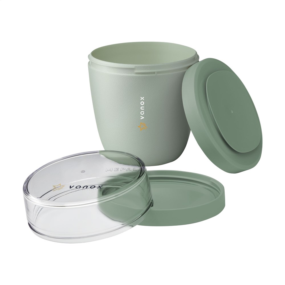 Dieser Plastikbehälter der Marke Mepal ist ein praktisches Produkt zum Mitführen von Lebensmitteln. Der Behälter hat zwei Teile. Durch eine Drehbewegung lassen sich die beiden Teile voneinander trennen. Beide Teile haben einen separaten Deckel. Die ideale Lösung, um Geschmiere beim Mischen zu vermeiden. Das Fassungsvermögen des oberen, transparenten Behälters beträgt 200 ml, d. h. dort ist Platz für ca. 75 g Müsli oder Obst. Das Fassungsvermögen des unteren Behälters bietet mit 500 ml genug Platz für eine Portion Suppe, Nudeln oder Joghurt. Ein qualitativ hochwertiges Produkt. Lebensmittelgeprüft und auslaufsicher. Geeignet für Mikrowelle (außer Deckel) und Gefriertruhe. 2 Jahre Mepal Herstellergarantie. Hergestellt in den Niederlanden. LAGERBESTANDSINFORMATION: Bis zu 1.000 Stück innerhalb von 10 Arbeitstagen verfügbar. Ausnahmen vorbehalten. Verpackt pro Stück.