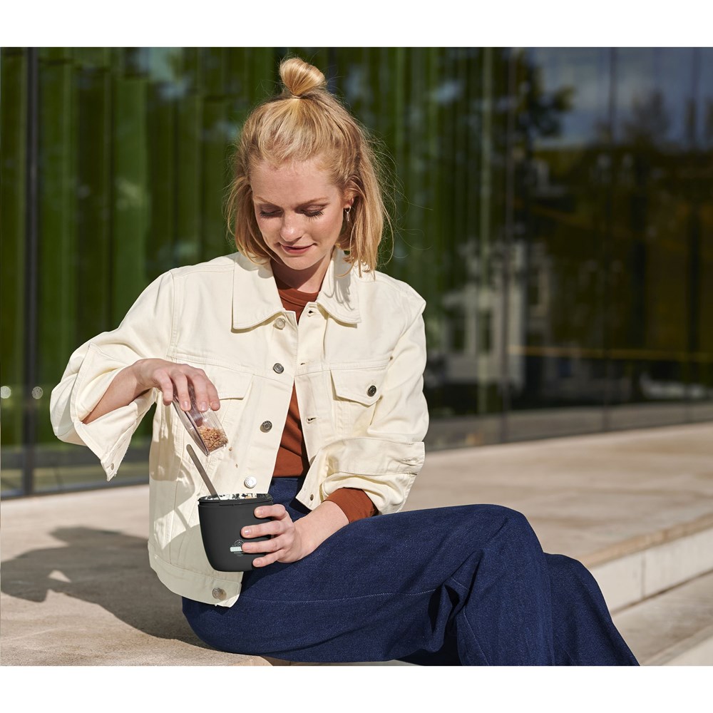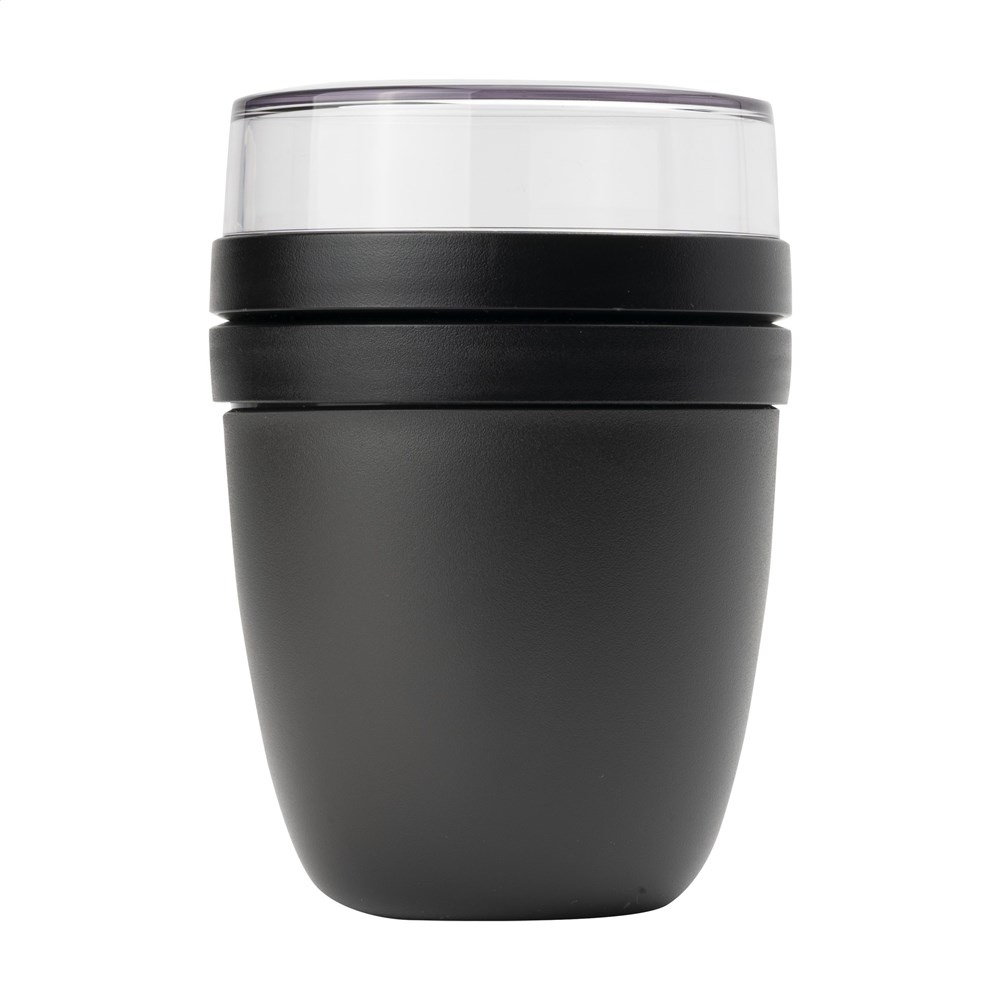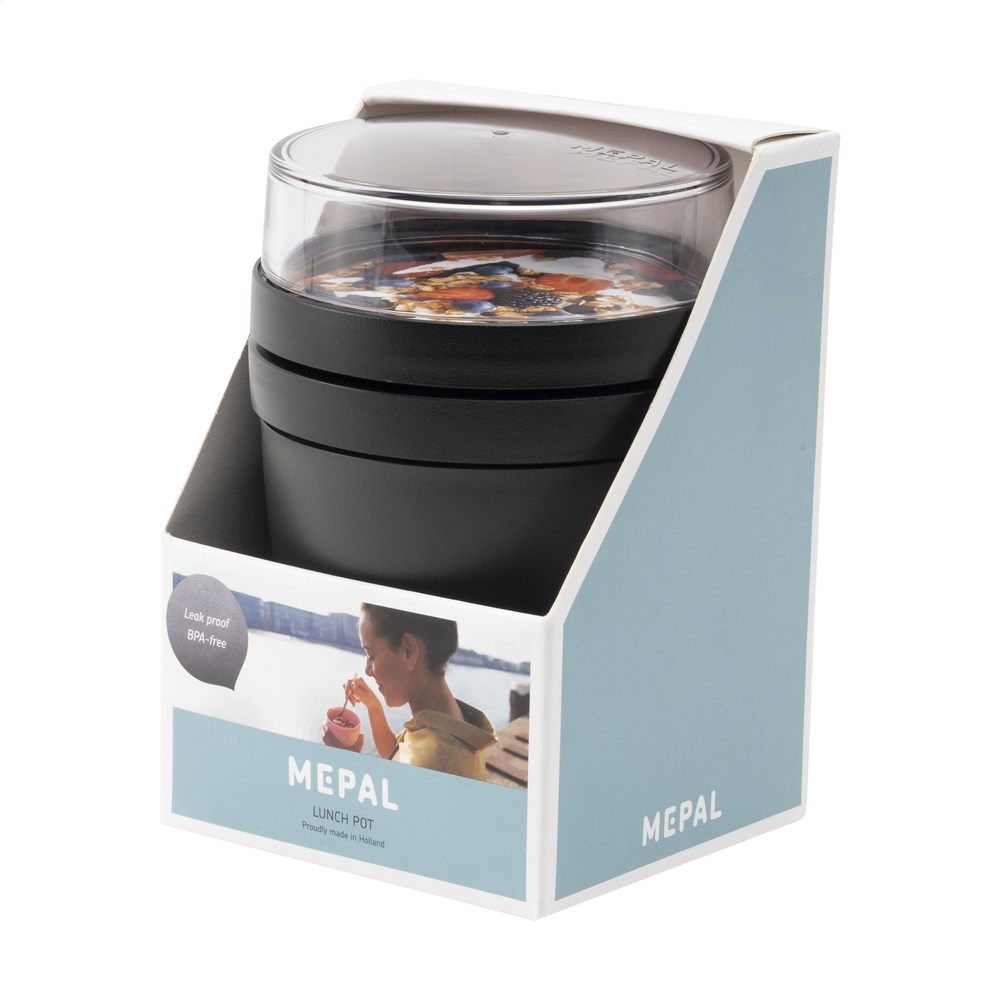Dieser Plastikbehälter der Marke Mepal ist ein praktisches Produkt zum Mitführen von Lebensmitteln. Der Behälter hat zwei Teile. Durch eine Drehbewegung lassen sich die beiden Teile voneinander trennen. Beide Teile haben einen separaten Deckel. Die ideale Lösung, um Geschmiere beim Mischen zu vermeiden. Das Fassungsvermögen des oberen, transparenten Behälters beträgt 200 ml, d. h. dort ist Platz für ca. 75 g Müsli oder Obst. Das Fassungsvermögen des unteren Behälters bietet mit 500 ml genug Platz für eine Portion Suppe, Nudeln oder Joghurt. Ein qualitativ hochwertiges Produkt. Lebensmittelgeprüft und auslaufsicher. Geeignet für Mikrowelle (außer Deckel) und Gefriertruhe. 2 Jahre Mepal Herstellergarantie. Hergestellt in den Niederlanden. LAGERBESTANDSINFORMATION: Bis zu 1.000 Stück innerhalb von 10 Arbeitstagen verfügbar. Ausnahmen vorbehalten. Verpackt pro Stück.
