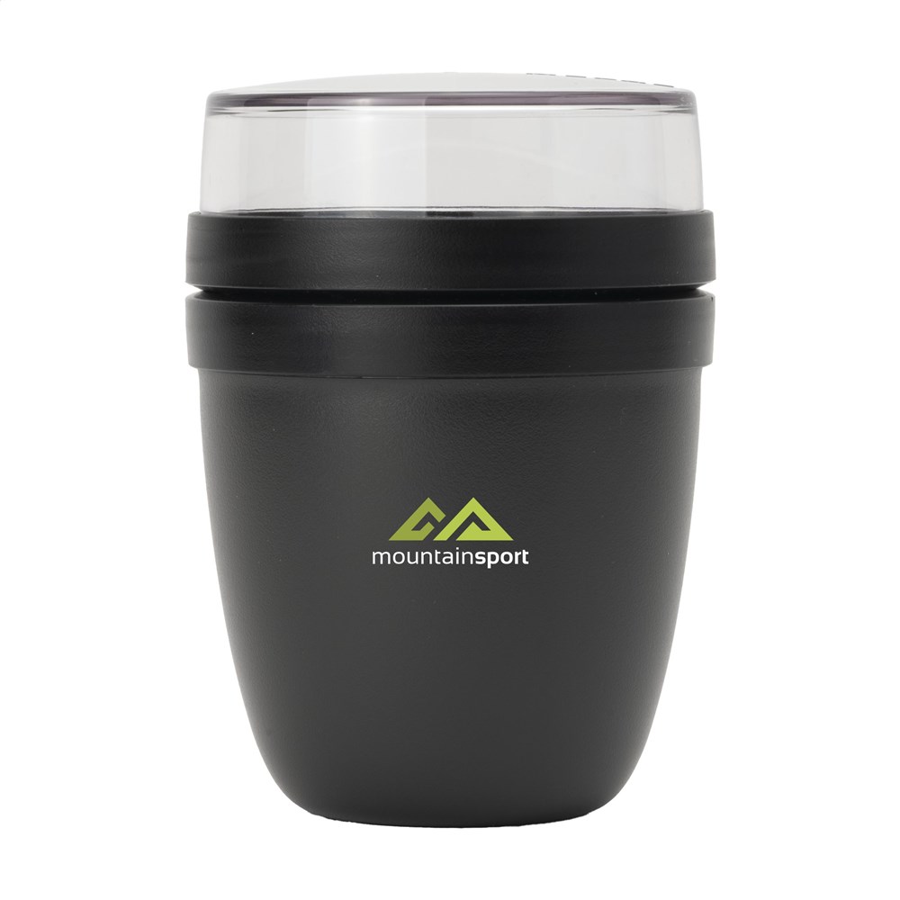 Dieser Plastikbehälter der Marke Mepal ist ein praktisches Produkt zum Mitführen von Lebensmitteln. Der Behälter hat zwei Teile. Durch eine Drehbewegung lassen sich die beiden Teile voneinander trennen. Beide Teile haben einen separaten Deckel. Die ideale Lösung, um Geschmiere beim Mischen zu vermeiden. Der Inhalt des oberen, transparenten Behälters beträgt 120 ml, d. h. dort ist Platz für ca. 50 g Müsli oder Obst. Der Inhalt des unteren Behälters bietet mit 300 ml genug Platz für eine Portion Suppe, Nudeln oder Joghurt. Ein qualitativ hochwertiges Produkt. BPA-frei, lebensmittelgeprüft und auslaufsicher. Geeignet für Mikrowelle (außer Deckel) und Gefriertruhe. 2 Jahre Mepal Herstellergarantie. Hergestellt in den Niederlanden. LAGERBESTANDSINFORMATION: Bis zu 1.000 Stück innerhalb von 10 Arbeitstagen verfügbar. Ausnahmen vorbehalten. Verpackt pro Stück.