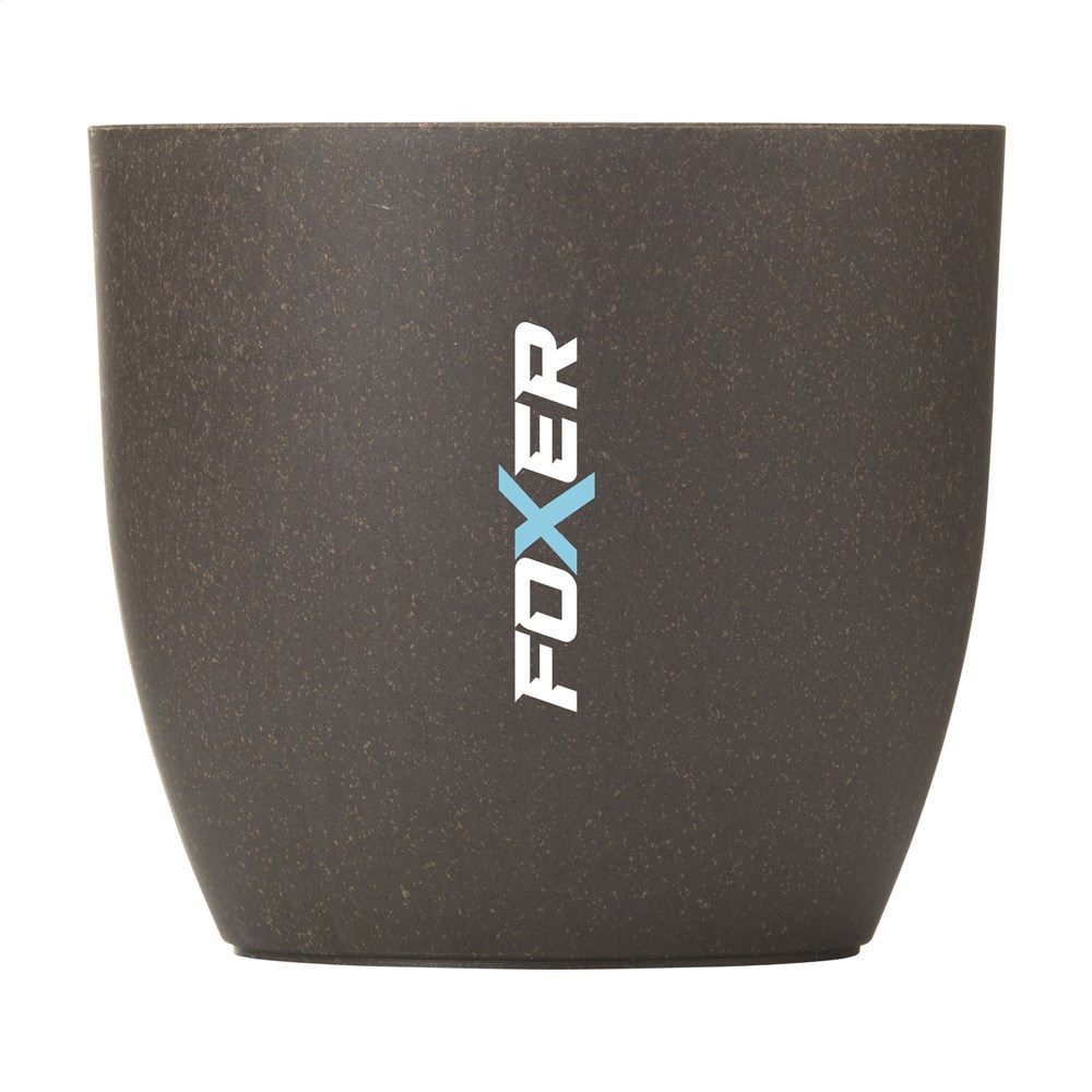 Dieser vollständig kompostierbare Blumentopf wird aus dem Kaffeesatz hergestellt, der bei der Zubereitung einer Tasse Kaffee anfällt. Er kann mit Ihrem Firmenlogo personalisiert werden und ist somit der perfekte Blumentopf, um ein wenig Grün in Ihr Büro zu bringen. In den Niederlanden werden jährlich 120 Millionen Kilo Kaffeesatz produziert. Das Material auf Kaffeebasis ist eine Mischung aus gebrauchtem Kaffeesatz und einem Biopolymer. Das Biopolymer des Coffee Based Materials basiert auf recycelten Rohstoffen aus Kartoffel-, Getreide-, Wurzel- oder Samenmehl. Der gebrauchte Kaffeesatz ist ein Abfallstrom aus der Kaffeeindustrie oder der Büroumgebung. Hergestellt in Holland. Da Kaffeesatz ein organisches Material ist, ist er natürlich biologisch abbaubar. Das Biopolymer ist außerdem biologisch abbaubar und entspricht der Norm EN13432 (Norm für die industrielle Kompostierung). Wird einzeln in einem Kraftkarton geliefert.