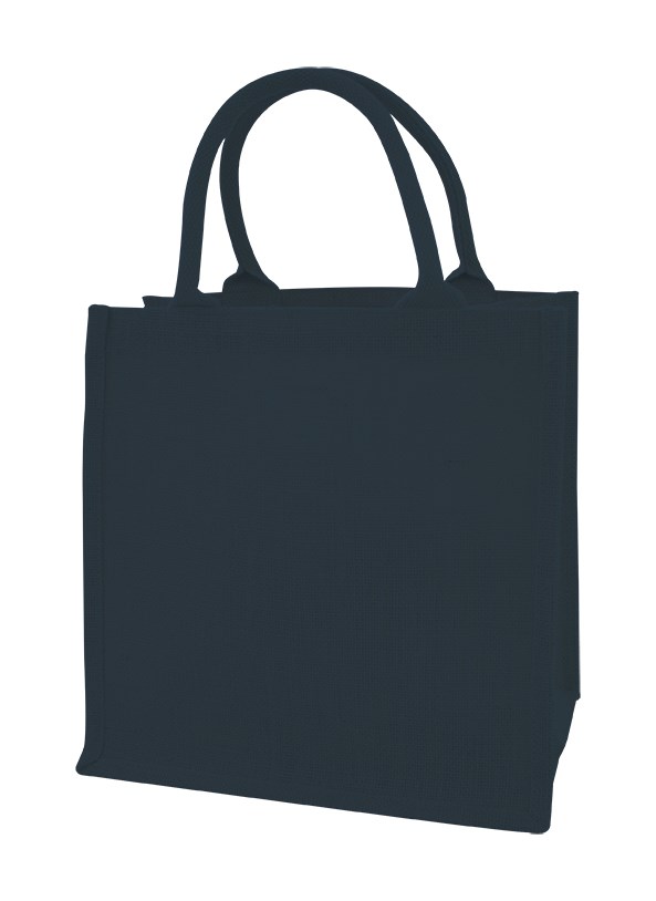 Material: 100% Jute Farbe: navy Größe: ca. 30x30 cm Boden- und Seitenfalte: ca. 20 cm Ausführung: -gewebter Baumwoll-Tragegriff (ca. 1,5x40 cm) Zertifikate: Oeko-Tex Standard 100, LFGB