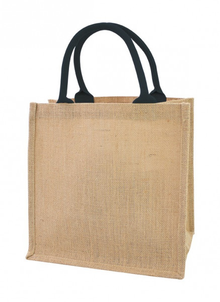 Material: 100% Jute Farbe: natur Größe: ca. 30x30 cm Boden- und Seitenfalte: ca. 20 cm Ausführung: -gewebter Baumwoll-Tragegriff (ca. 1,5x40 cm), navy Zertifikate: Oeko-Tex Standard 100, LFGB