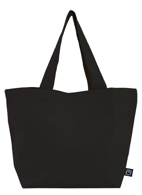 Material: 100% Baumwolle Grammatur: 390g/m² Farbe: schwarz Größe: ca. 52x35 cm Bodenfalte: ca. 18 cm Ausführung: -gewebter flacher Baumwollhenkel (ca. 4x60 cm) Kreuznaht -Overlocknaht Zertifikate: Oeko-Tex Standard 100, Fairtrade