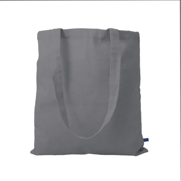 Material: 100% Baumwolle Grammatur: ca. 220 g/m² Farbe: grey Größe: ca. 38x42 cm Ausführung: - 2 lange Henkel (ca. 2,5x70 cm), Kreuznaht Zertifikate: Oeko-Tex Standard 100