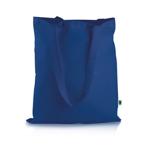 Material: 100% Baumwolle Grammatur: 140 g/m² Farbe: royal Größe: ca. 38x42 cm Ausführung: - 2 lange Henkel (ca. 2,5x70 cm), Kreuznaht - Kettelnaht innen Zertifikate: Oeko-Tex Standard 100, Fairtrade