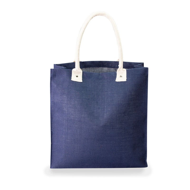 Material: 100% Jute Farbe: navy Größe: ca. 30x40 cm Boden- und Seitenfalte: ca. 18 cm Ausführung: 2 lange Henkel (ca. 60 cm), natur Zertifikate: Oeko-Tex Standard 100, LFGB