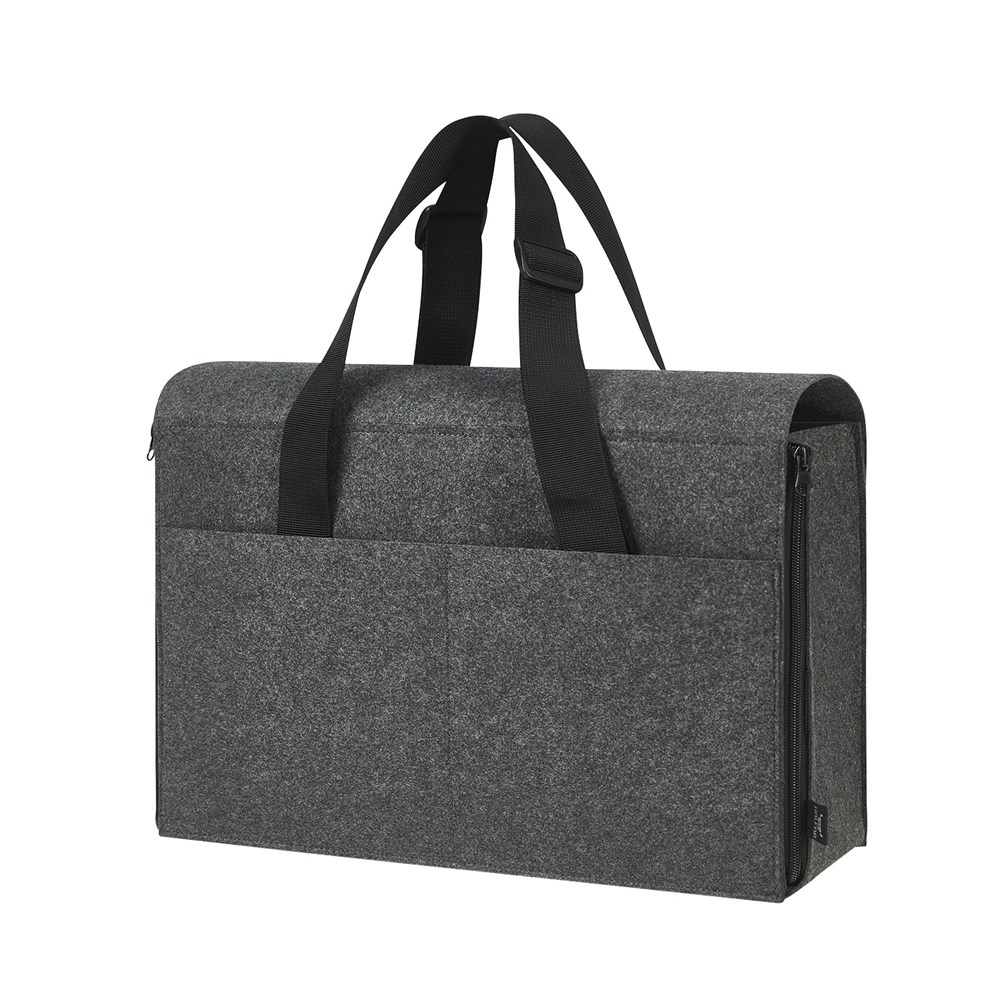 umfangreich ausgestatteter Organizer mit großem Hauptfach; Schnellöffnungsfunktion für mobiles Arbeiten; mit und ohne Überschlag nutzbar; gepolsterter Boden; Laptop-Halterung; flaches Einsteckfach auf der Front; zwei Einsteckfächer rückseitig; zwei Fixierungsschlaufen z.B. für Getränkeflasche; drei flache Einsteckfächer innen; drei Einsteckschlaufen innen; flache Reißverschluss-Tasche innen; längenverstellbare Tragegurte