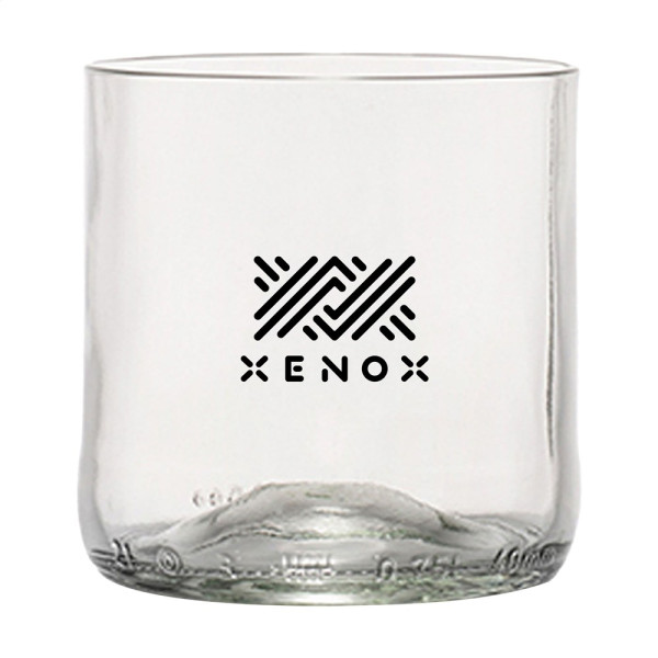Ein Design Trinkglas hergestellt aus einer recycelten Weinflasche. Ein einzigartiges Glas der Marke Rebottled®, in dem man die Original-Weinflasche sofort erkennt. Das Glas liegt gut in der Hand und hat eine glatte Oberfläche. Von hoher Qualität und geeignet für Wasser, Softdrinks oder Wein. Spülmaschinengeeignet bis 60°C. Um den Aufdruck zu erhalten, wird Waschen von Hand empfohlen. Pro Stück in einer originellen Geschenkbox aus recyceltem FSC®-zertifiziertem Karton geliefert. Niederländisches Design. Made in Holland. Fassungsvermögen ca. 250 ml. Aufdruck nur in schwarz oder weiß möglich. Rebottled® ist eine Marke, die leere Weinflaschen zu 100% kreisförmige Designobjekte upcycelt. Verpackt pro Stück.