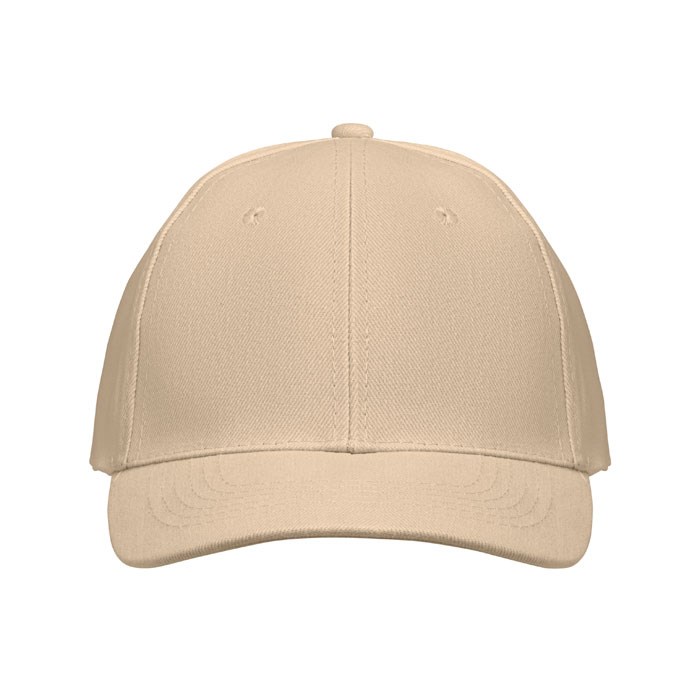 6-Panel-Baseball-Cap aus gebürsteter Baumwolle 260 g/m² mit silberner Schnalle aus Stahl mit Einstecklasche. Sechs farblich abgestimmte, umstickte Belüftungslöcher. Größe 7 1/4.