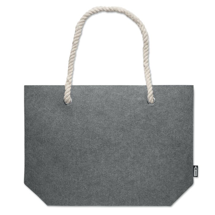 Einkaufs- oder Strandtasche aus RPET-Filz mit Kordelgriff. Filzstärke: 2 mm.