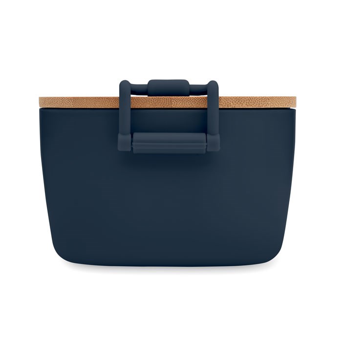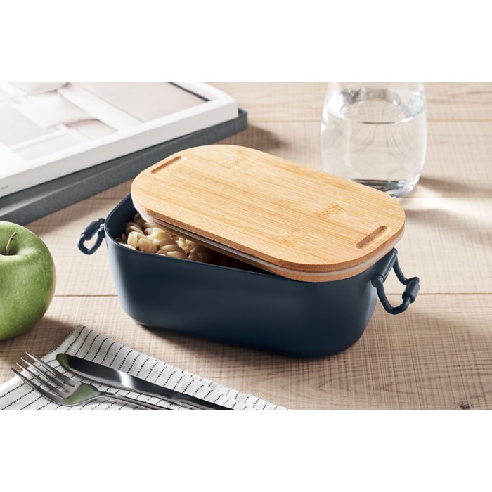 Lunchbox aus PP mit Deckel aus Bambus. 2 seitliche Halteklammern. Füllmenge: 700 ml.