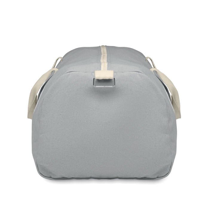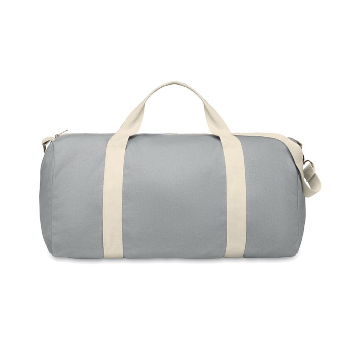 Große Tasche aus recycelten Materialien (60% recycelte Baumwolle, 40% recycelter Polyester) in 320 g/m². Tragegriffe aus natürlichem Baumwollgewebe. Verstellbarer und abnehmbarer Schultergurt.