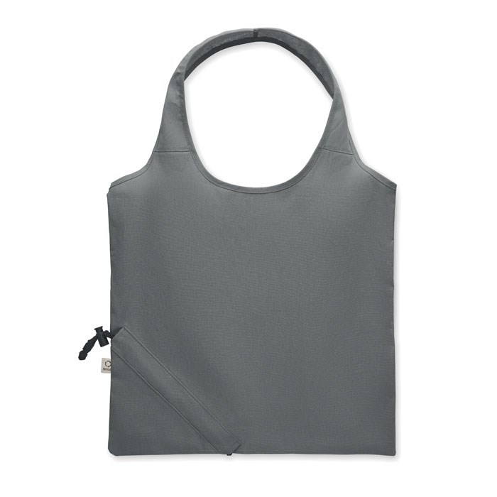 Faltbare Einkaufstasche aus recycelter Pre-Consumer-Baumwolle (70% recycelte Baumwolle und 30% RPET). 140 g/m². Artikel kann nach dem Bedrucken schrumpfen.