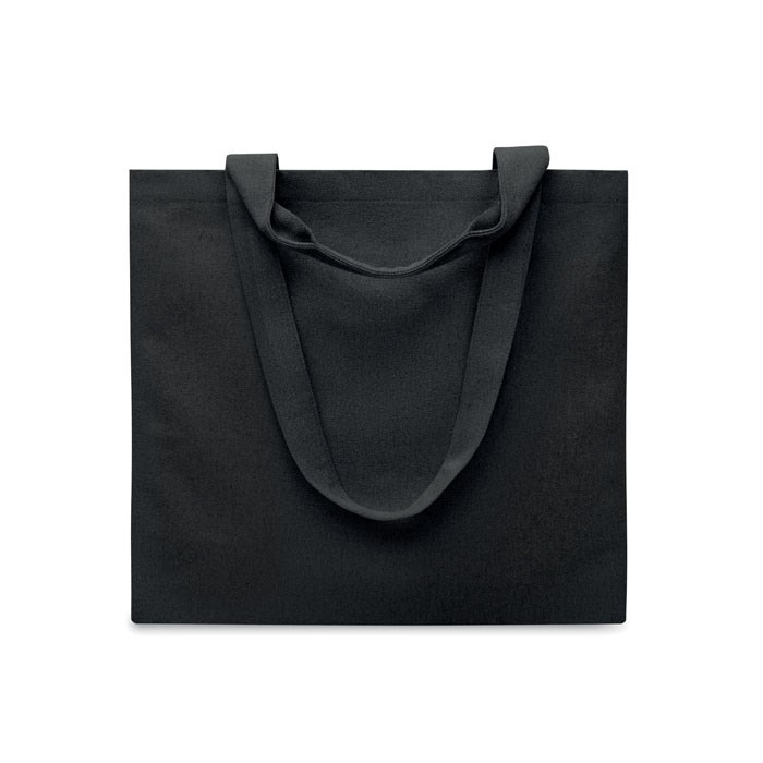 Einkaufs- oder Strandtasche aus recycelten Materialien (60 % recycelte Baumwolle, 40 % recycelter Polyester). Kurze und lange Tragegriffe. 320 g/m².