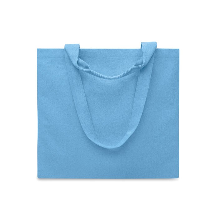 Einkaufs- oder Strandtasche aus recycelten Materialien (60 % recycelte Baumwolle, 40 % recycelter Polyester). Kurze und lange Tragegriffe. 320 g/m².