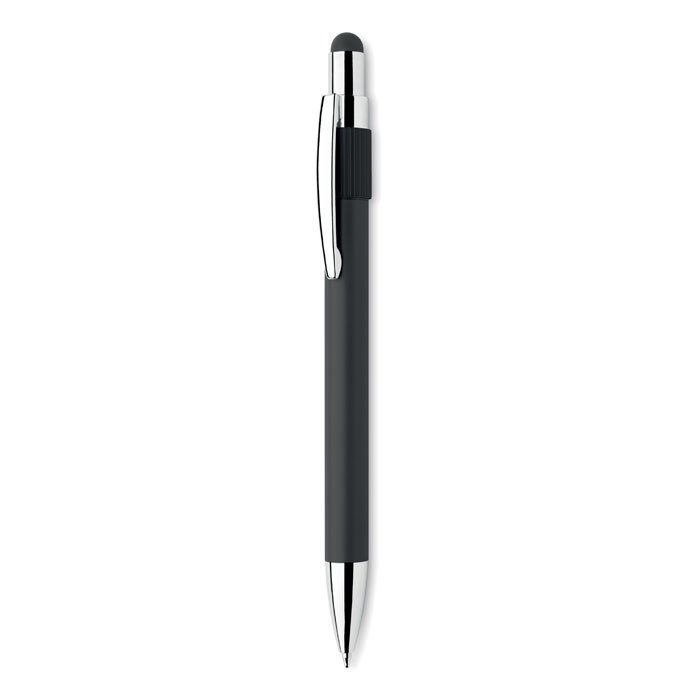 Druckkugelschreiber aus recyceltem Aluminium mit Stylus und Anti-Stress-Spinner-Funktion. Blaue Tinte.