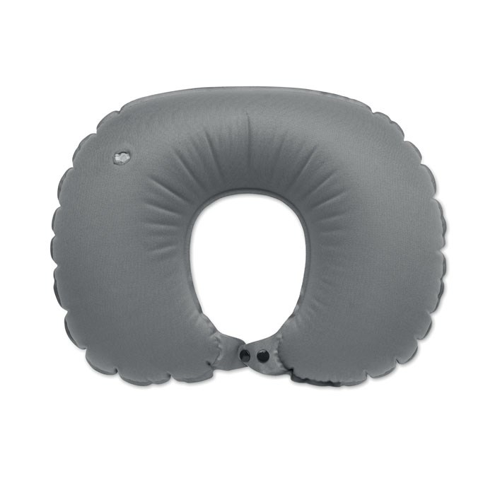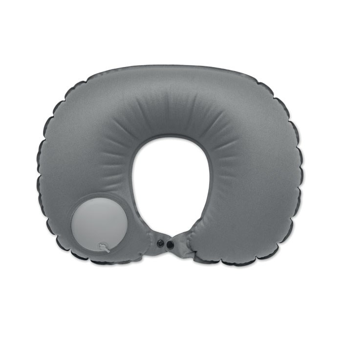 Schnell aufblasbares Reisekissen (50% PET und 50% TPU). Integrierte Pumpe und Luft-Ablass-Funktion. Inkl. Beutel im gleichen Material.