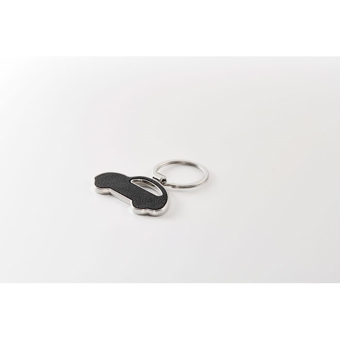 Schlüsselring mit Anhänger in Optik eines Autos. Metall mit Einlage aus recyceltem PU.