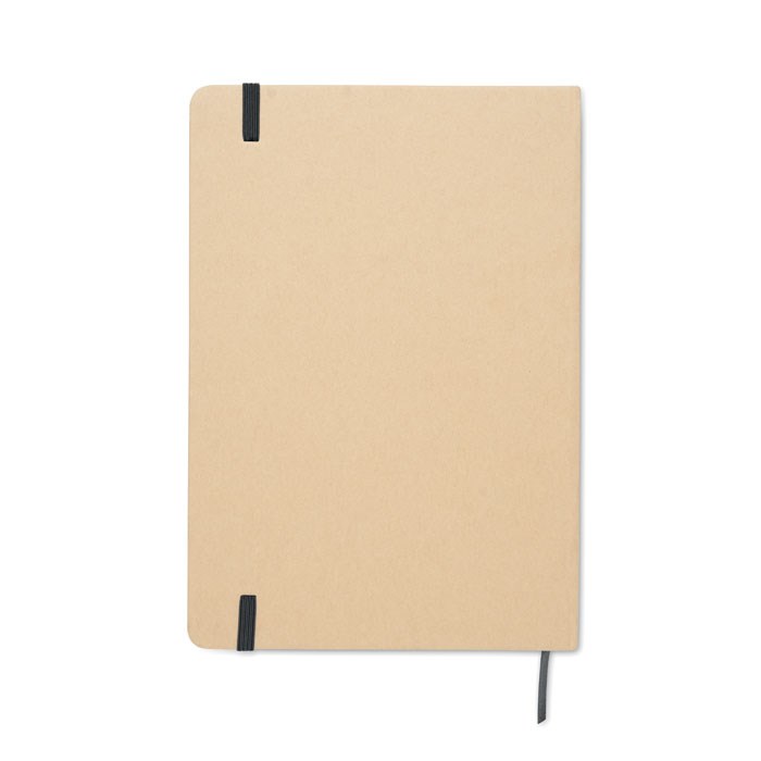 DIN A5 Notizbuch mit gebundenem Hard Cover aus recyceltem Karton. Beiges Cover. 80 Blatt (160 Seiten) liniertes Recyclingpapier. Nach der Gravur des Covers, wird die Farbe sichtbar. Farblich abgestimmtes elastisches Verschlussband und Lesebändchen. FSC®-certified | FSC MIX CREDIT, P7.1, FSC-C213206