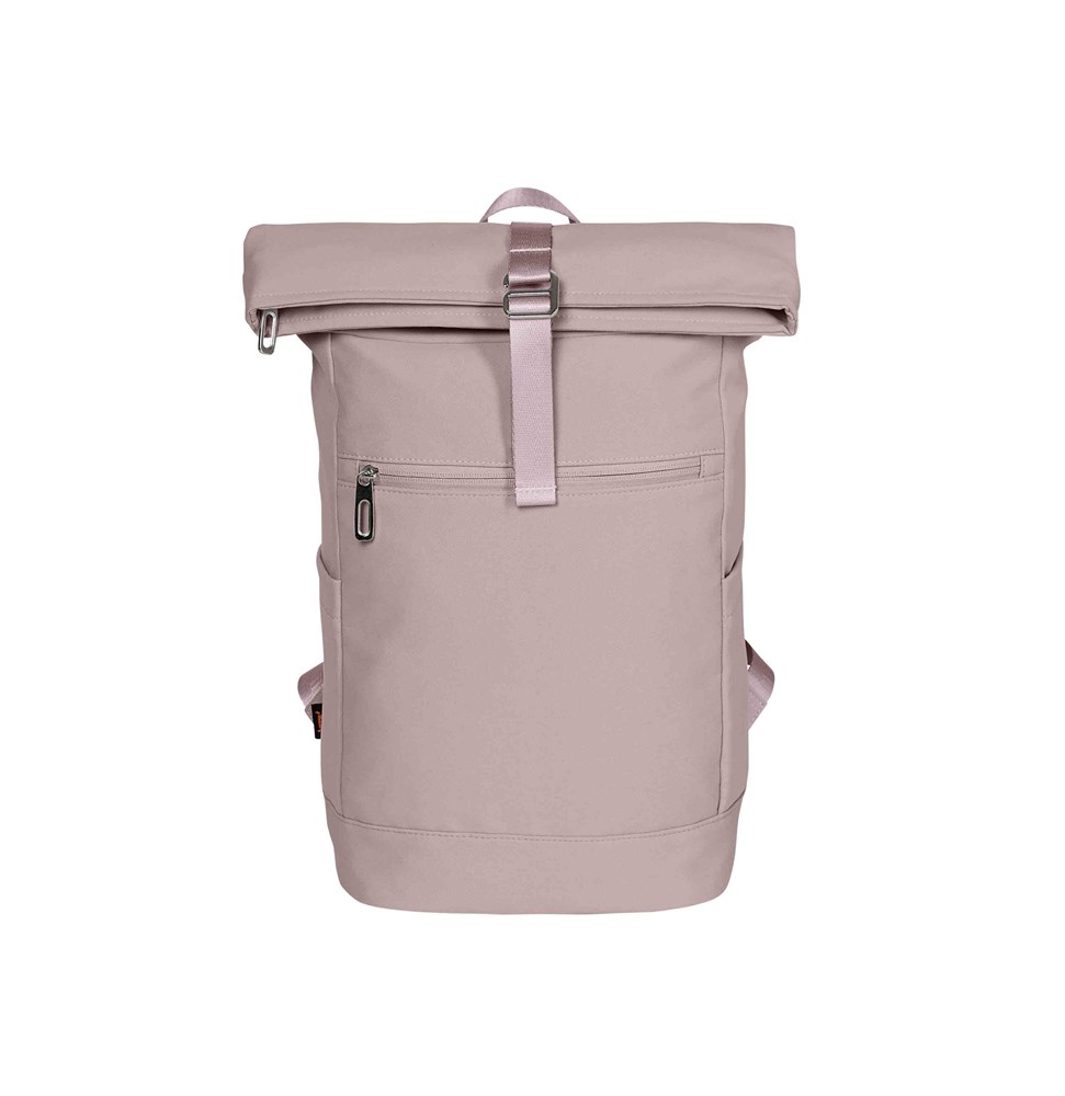 modischer Rolltop-Rucksack; Reißverschluss-Hauptfach mit verstellbarem Verschlusssystem; Schlaufenband auf dem Deckel; wertiger Metallaccessoires; gepolstertes Gerätefach; Reißverschluss-Vortasche; zwei seitliche Einsteckfächer; gepolsterter Boden; gepolstertes Tragesystem; rückseitige Befestigungsschlaufe für Trolley-Gestänge; Handgriff