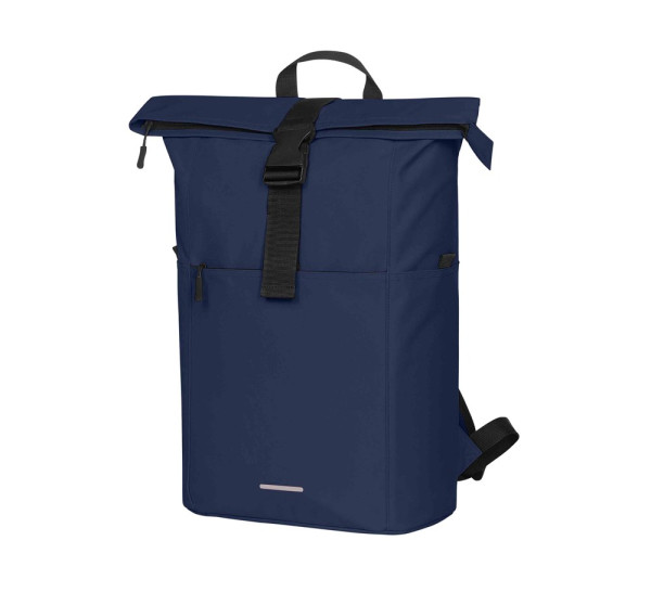 praktischer Roll-Top Rucksack; recycelter Oberstoff; großes Hauptfach mit Reißverschluss und zusätzlichem Steckverschluss; attraktiver Reflexdruck; RPT-Obermaterial; großes gepolstertes Einsteckfach; Airtag-Einsteckfach; große Reißverschluss-Vortasche auf der Front; zwei seitliche Einsteckfächer für z.B. Trinkflasche; gepolstertes Tragesystem; Handgriff