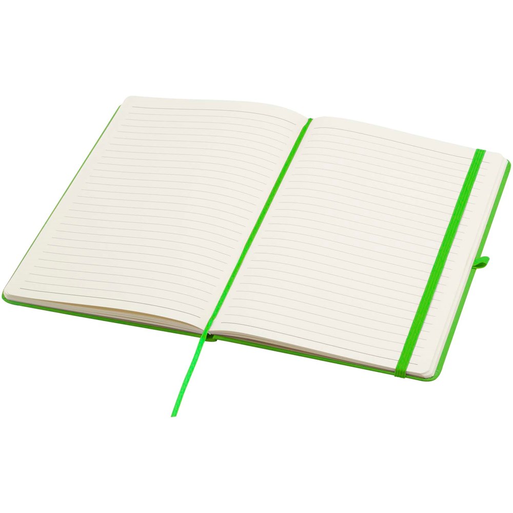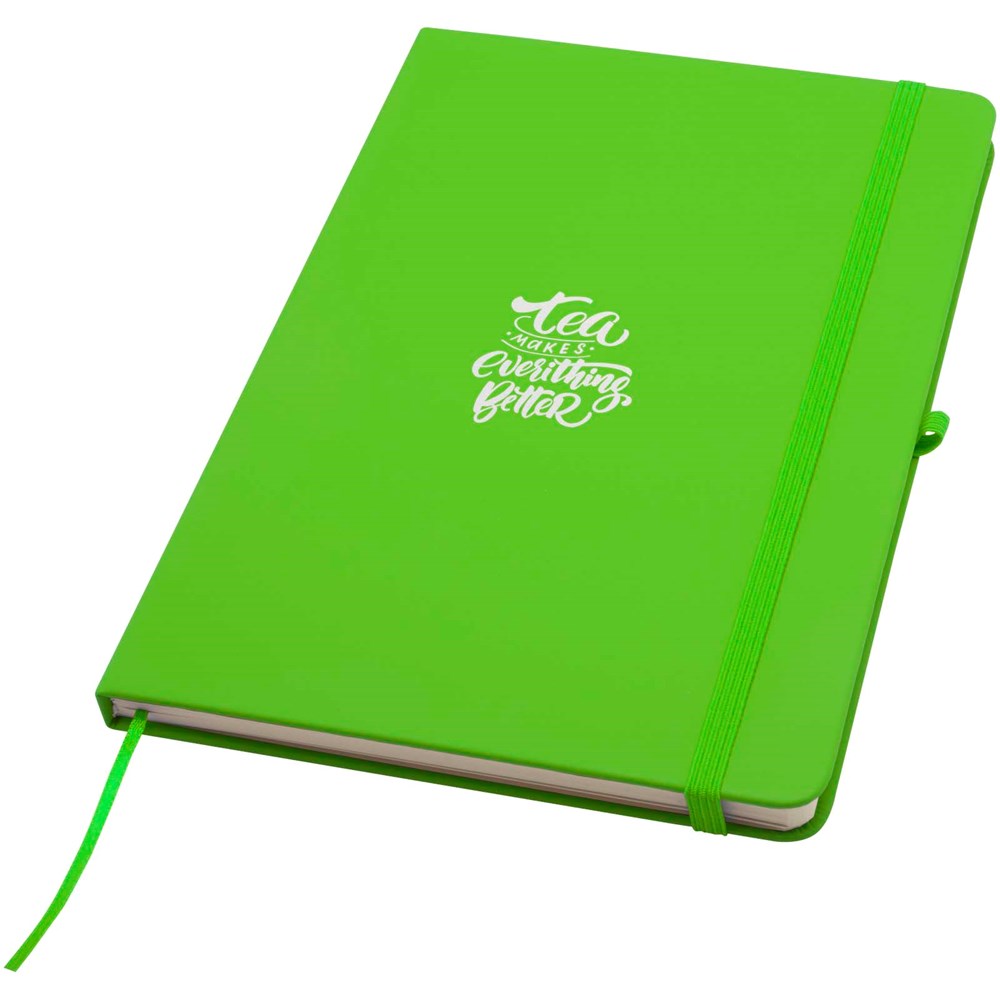 Das Spectrum Plus A5 Hardcover Notizbuch mit abgerundeten Ecken ist nicht nur ein unentbehrlicher Begleiter im Büro, sondern auch ein hervorragender Weg, um für Ihre Marke zu werben. Das Notizbuch aus Karton mit weichem Einband und 80 linierten, cremefarbenen Seiten (70 g/m²) eignet sich ideal für schnelle Ideen oder längere Notizen. Das Notizbuch ist mit Stiftschlaufe, elastischem Verschluss, Lesebändchen und erweiterbarrter Tasche ausgestattet.